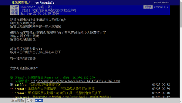 ↑ 網友們討論近年按讚意願大幅減少 點我傳送