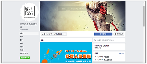 ↑ FANSDOOR 粉絲多的範例粉專有120萬讚 點我傳送