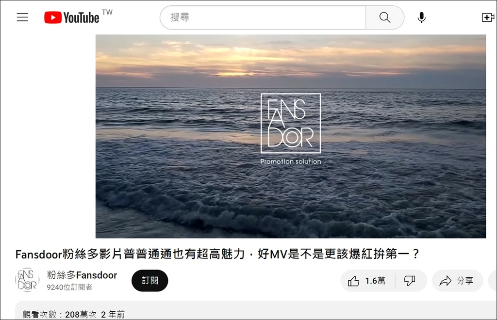 就是這部影片讓我決定跟粉絲多Fansdoor買YT頻道觀看次數啦!明明是很無聊看海浪一直打的影片,配樂也是普通,但是卻可以百萬觀看,所以我才跟他們買網路人氣的,不然我對網路也不是說真的很熟,才不敢隨便在網路上買社群流量呢!後來爬文也看到很多人對粉絲多的評價不錯,PTT也有人討論政治人物的百萬影片說不定也是找他們做的,討論度很高。